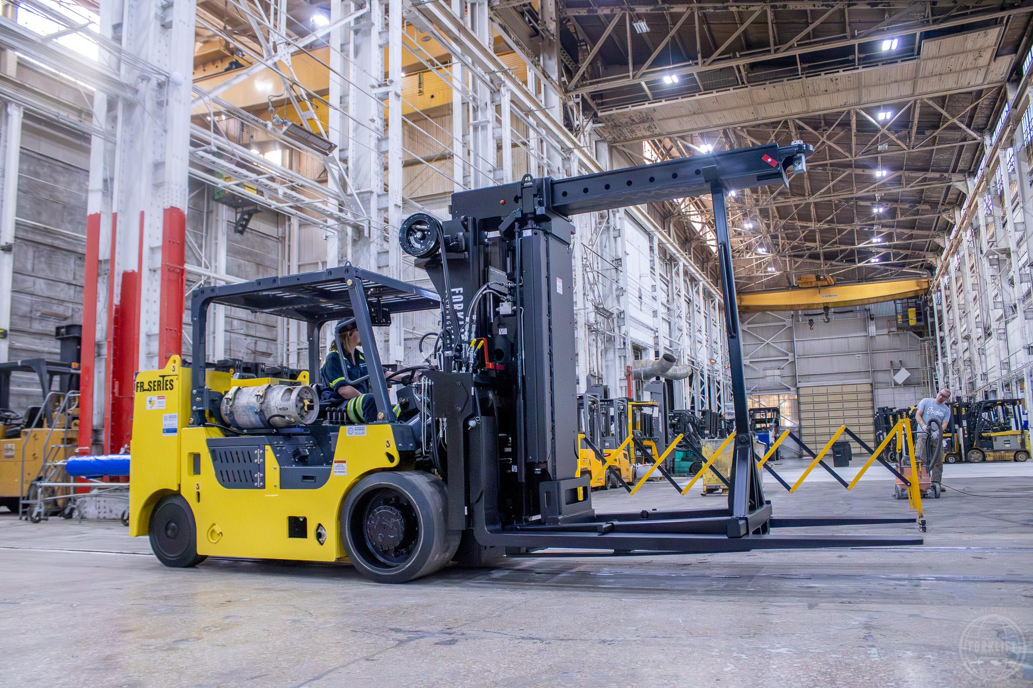 95″ Lowered / 95″ Raised | 35,000lbs @ 24″ Load Center | 96″ Quick Disconnect Pallet Forks | SSFP | Boom & Stand | Cushion Tires | Dual Fuel | Includes New Truck Warranty | Nationwide Shipping Available