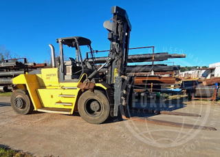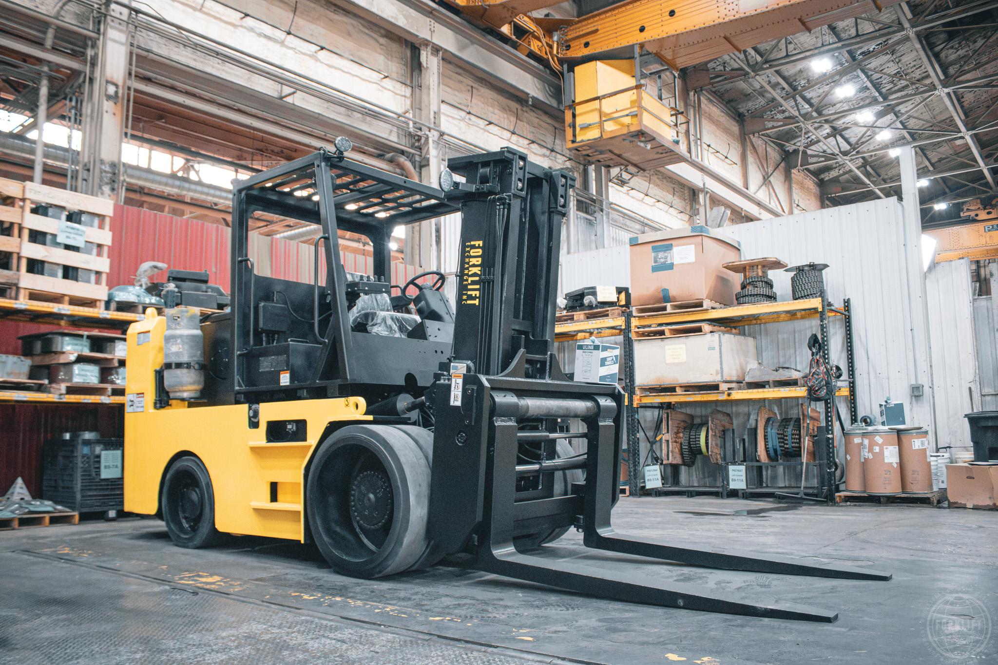 This is a heavy-duty cushion tire forklift designed for high-capacity indoor and plant applications...