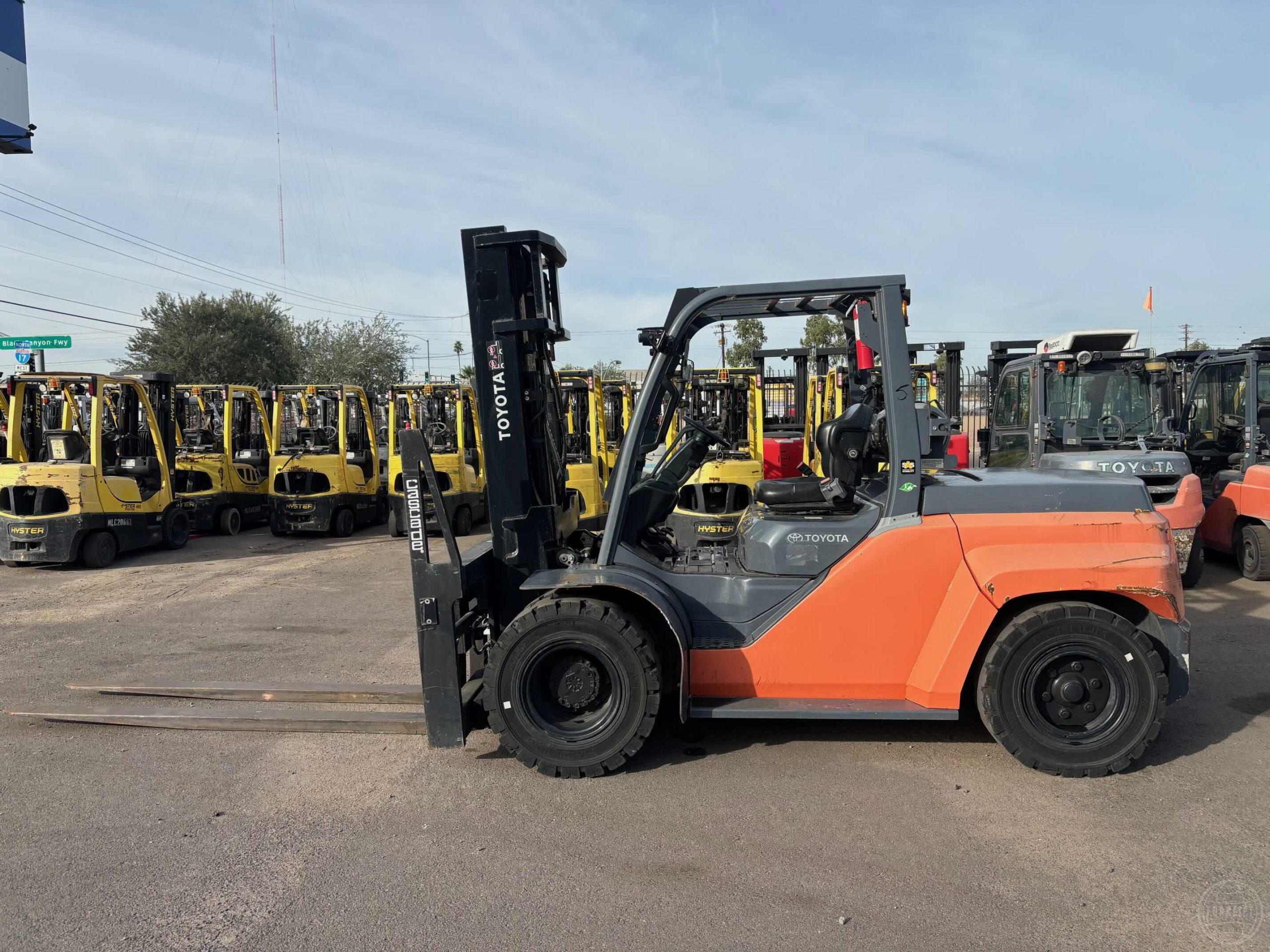 Capacity; 6,000 lbs Hours: 9,248 Mast: 187" Triple Integral SS LP Fuel Pneumatic Tires Ma..