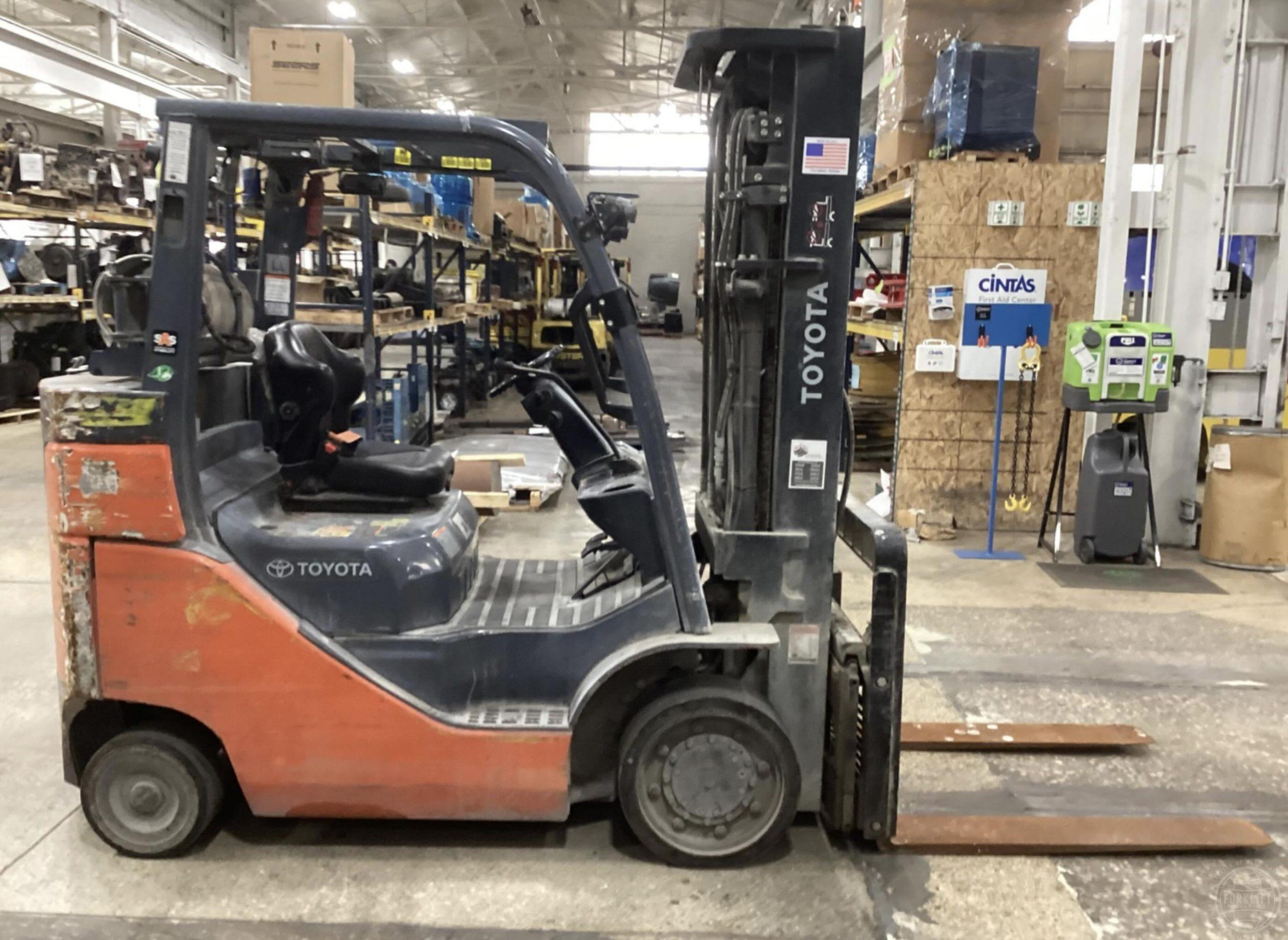 Capacity: 8,000 lbs Hours: 6,284 Mast: 199” Triple Cushion Tires LP Fuel Side Shift Machine ..